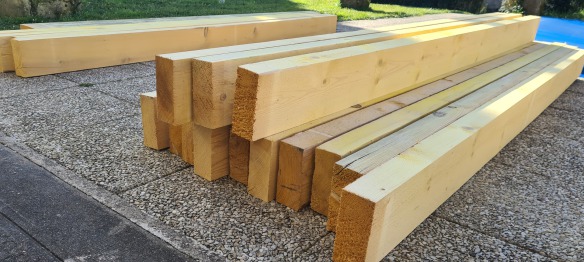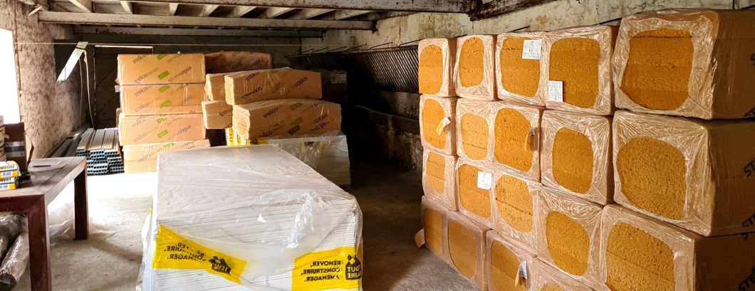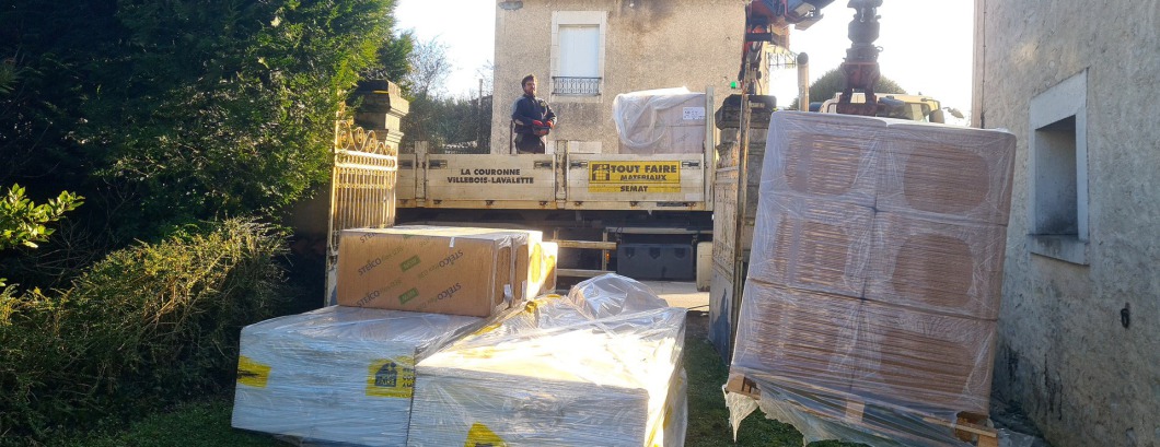 et quelques jours plus tard une cargaison de bois et OSB pour la re-construction du plancher de l'étage.