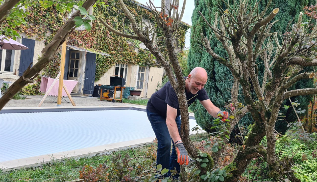 Nous mettrons à profit les éclaircies de la première semaine pour élaguer les arbres et couvir la piscine pour l'hiver.