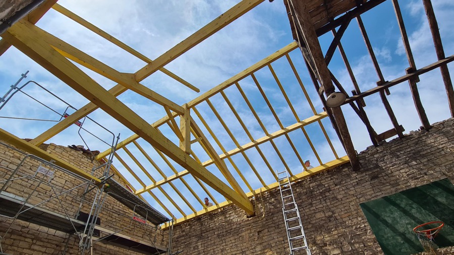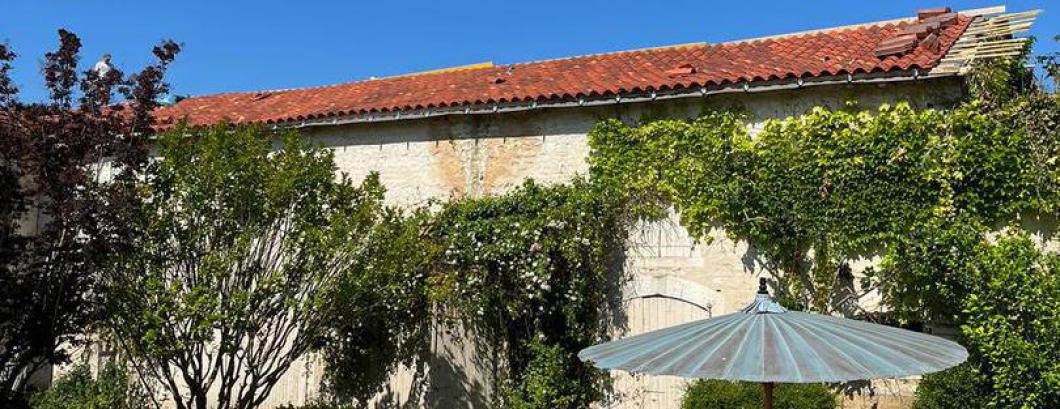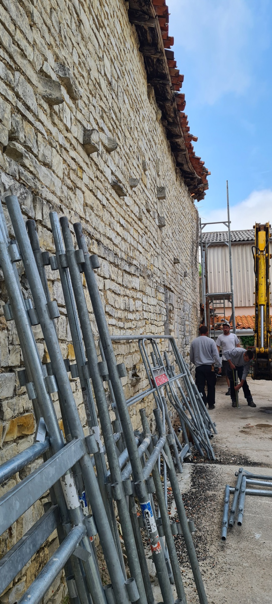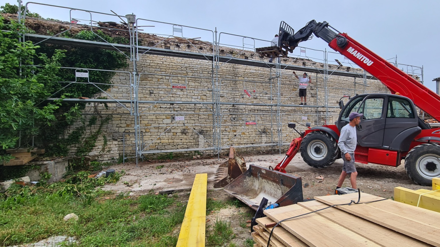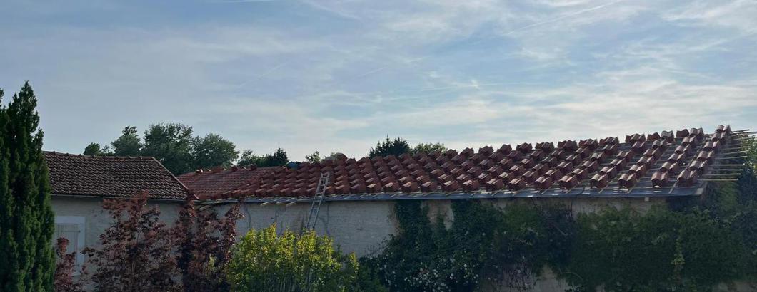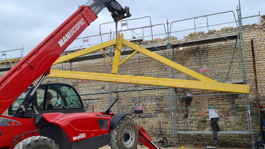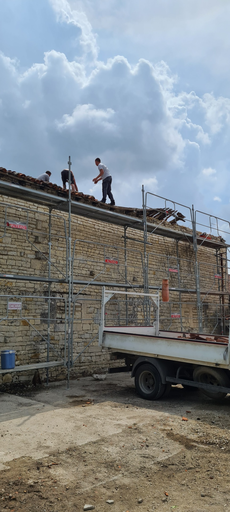 On le savait...la toiture au dessus de la grange "aux charettes" était très mal en point et tenait depuis longtemps encore debout avec des étais...