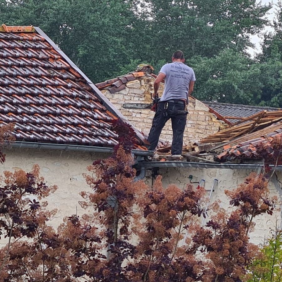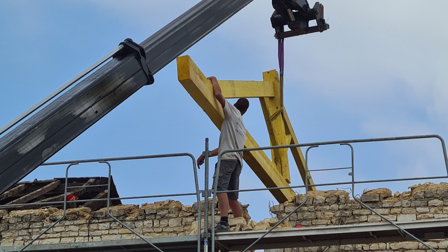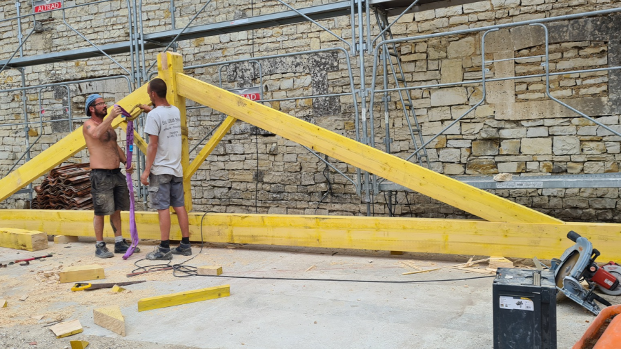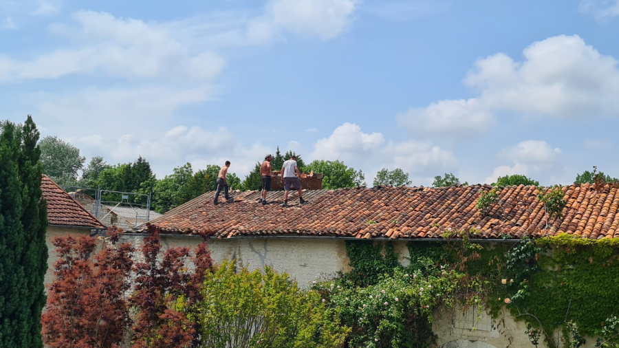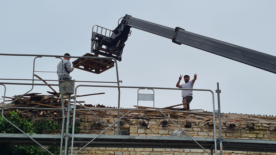Le 15 mai l'équipe de charpentiers-couvreurs est là pour commencer le chantier.